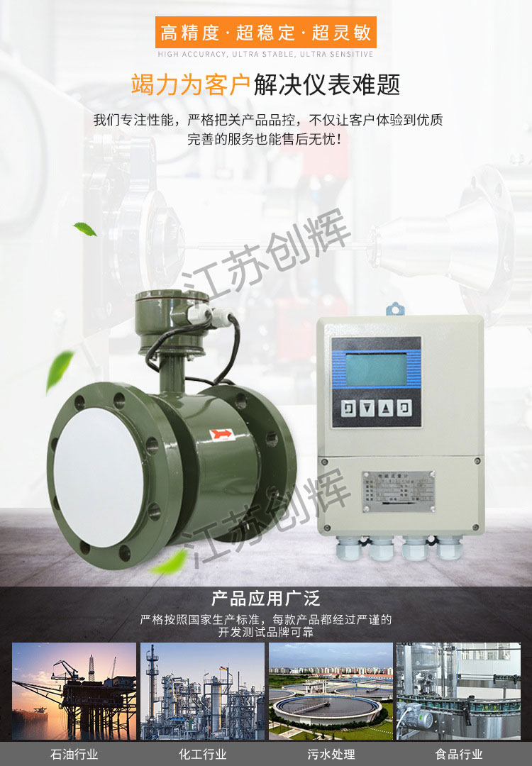 CH-LEW污水電磁流量計(jì)由傳感器和轉(zhuǎn)換器兩部分構(gòu)成。它是基于法拉第電磁感應(yīng)定律工作日的用來(lái)測(cè)量導(dǎo)電率大于5μS/cm導(dǎo)電液體的體積流量,是一種測(cè)量導(dǎo)電介質(zhì)體積流量的感應(yīng)式儀表。除可測(cè)量一般導(dǎo)電液體的體積流量外,還可用于測(cè)量強(qiáng)酸強(qiáng)堿等強(qiáng)腐蝕液體和泥漿、礦漿、紙漿等均勻的液固兩相懸浮液體的體積流量。**應(yīng)用于石油、化工、冶金、輕紡、造紙、環(huán)保、食品等工業(yè)部門及市政管理,水利建設(shè)、河流疏浚等領(lǐng)域的流量計(jì)量 柴油、潤(rùn)滑油、重油等無(wú)雜質(zhì)油性液體的高精度測(cè)量。