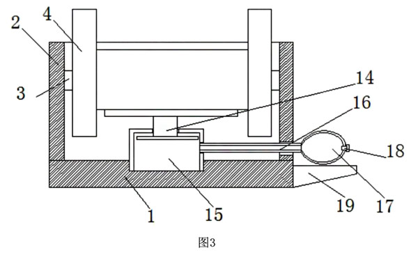 升降活動(dòng)槽5與升降滑塊6的數(shù)量均為四個(gè),且兩個(gè)升降活動(dòng)槽5與升降滑塊6為組,兩組升降活動(dòng)槽5與升降滑塊6分別分布在升降板7的頂面,使得定位滑軌12的移動(dòng)更為穩(wěn)定,不易卡住。