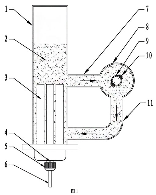 電磁流量計(jì)的脫蠟裝置通過法蘭固定在管道內(nèi)。含蠟石油與水的混合物流過上述管道,PTC陶瓷加熱器3通電后釋放熱能,使位于PTC陶瓷加熱器3附近的導(dǎo)熱介質(zhì)2溫度升高,這部分溫度升高的導(dǎo)熱介質(zhì)2與位于箱體1上部的未被加熱的導(dǎo)熱介質(zhì)2發(fā)生熱交換,位于箱體1出口的導(dǎo)熱介質(zhì)2向上流動,經(jīng)**介質(zhì)通道7進(jìn)入吸熱器8,使吸熱器8的外壁溫度升高在45℃左右,使粘附在吸熱器8外壁的石蠟涂覆層脫離。同時設(shè)置在吸熱器8內(nèi)的測量導(dǎo)管9外壁和電極10的溫度也隨之升高,使得位于導(dǎo)管9內(nèi)壁及電極10極掌面的溫度也被加熱到45℃左右,使粘附在導(dǎo)管9內(nèi)壁及電極10的石蠟涂覆層脫離。經(jīng)過熱傳遞后,吸熱器8內(nèi)的導(dǎo)熱介質(zhì)溫度降低。而位于第二介質(zhì)通道11內(nèi)的導(dǎo)熱介質(zhì)被PTC陶瓷加熱器3加熱后,溫度升高,與吸熱器8內(nèi)的導(dǎo)熱介質(zhì)形成溫差,使得位于吸熱器8內(nèi)的導(dǎo)熱介質(zhì)向第二介質(zhì)通道11流動。如此反復(fù)。這種導(dǎo)熱介質(zhì)的“微循環(huán)流動”采用了流體動力學(xué)的原理,替代了利用導(dǎo)熱循環(huán)泵使導(dǎo)熱介質(zhì)循環(huán)運(yùn)動的現(xiàn)有技術(shù)。由于整個系統(tǒng)不必通過導(dǎo)熱循環(huán)泵來進(jìn)行,節(jié)約了成本,同時還使得結(jié)構(gòu)更為簡單、保證了整個裝置的安全性和穩(wěn)定性。