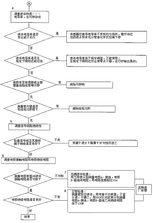 圖5 電磁流量計(jì)零點(diǎn)不穩(wěn)定檢查流程