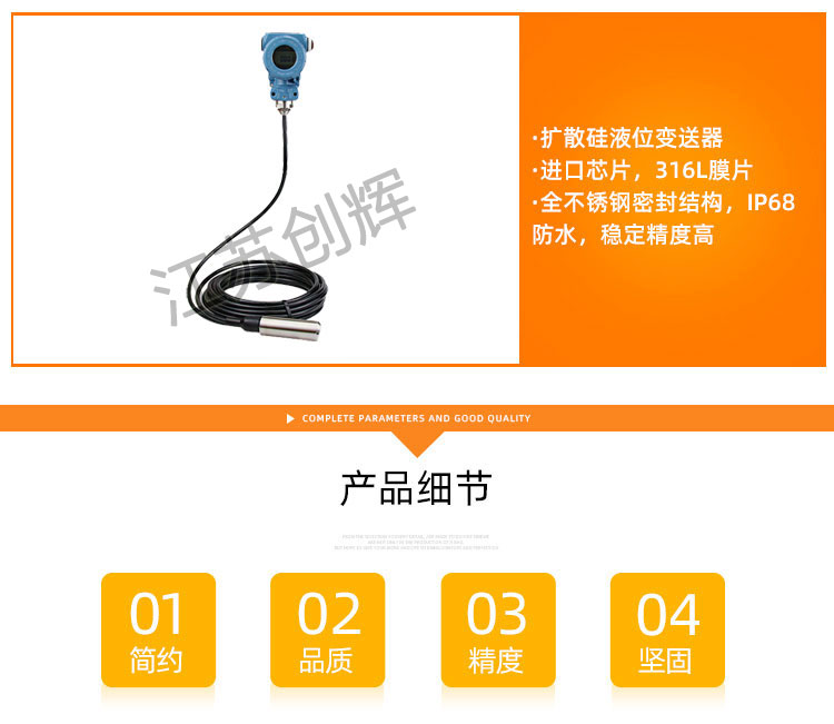 CH-TRS投入式液位變送器是基于所測液體靜壓與該液體高度成正比的原理,采用擴(kuò)散硅或陶瓷敏感元件的壓阻效應(yīng),將靜壓轉(zhuǎn)成電信號。經(jīng)過溫度補(bǔ)償和線性校正,轉(zhuǎn)換成4-20mADC標(biāo)準(zhǔn)電流信號輸出。 投入式液位變送器的傳感器部分可直接投入到液體中,變送器部分可用法蘭或支架固定,安裝使用極為方便。買投入式液位變送器***江蘇創(chuàng)輝,**從事投入式液位變送器儀表的開發(fā)和應(yīng)用.產(chǎn)品安全可靠,耐高溫高壓,技術(shù)**. 歡迎來電咨詢投入式液位變送器價(jià)格!