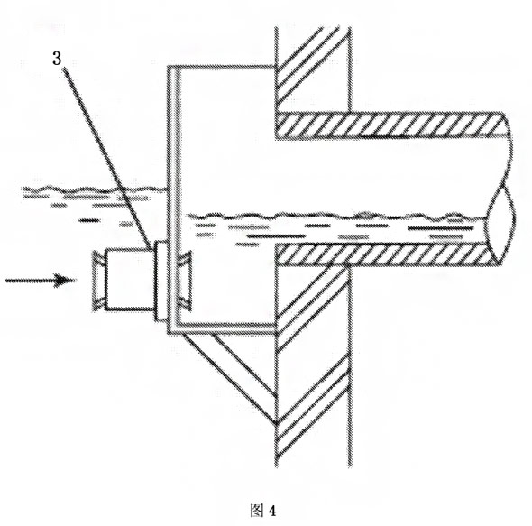 圖2中,潛水型電磁流量傳感器3為彎管型,進(jìn)行明渠流量的測量時(shí),將彎管型電磁流量傳感器3安裝在如圖8所示的位置,其它均同實(shí)施例1。