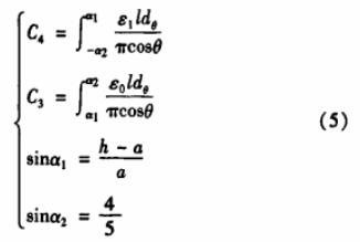 如圖3所示,管中液體將測(cè)量管分為上、下兩部分,其中空氣的介電常數(shù)為Eo,流體的介電常數(shù)為E1,村里的介電常數(shù)為E2,根據(jù)電容式傳感器模擬計(jì)算方法可知: